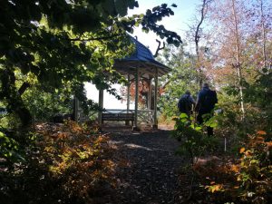 Start zum Rundwanderweg „Auf Spuren des Eselpfades“ am Wanderparkplatz Nassauer Allee in Schlangenbad mit einem Abstecher zum Musensitz am Anfang.