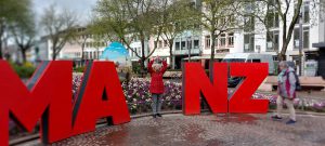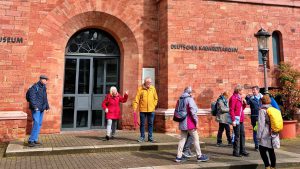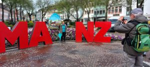 Angesichts des Regenwetters liefen wir nicht, wie geplant, durch die Weinberge, sondern vom Bahnhof West über das Fastnachtsmuseum, den Schillerplatz, St. Stephan und den Volkspark zur Einkehr in Weisenau.