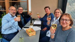 Fotos von der Kurzwanderung am 26.04.2024, Finthen nach Bretzenheim, 7,5km, 13 Teilnehmer + 1 Gastwanderer, Einkehr im Obsthof Weyer, Geführt von Marlies und Günter.