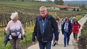 Kurzwanderung am 25.04.2025, Oppenheim -> Nierstein -> Oppenheim, 8km, 22 Teilnehmer, geführt von Carmen u. Uli.