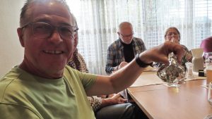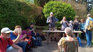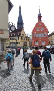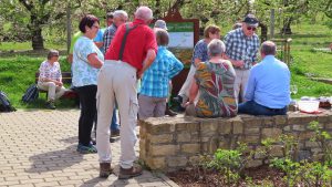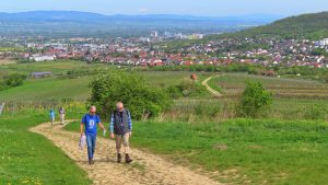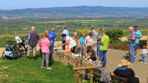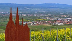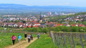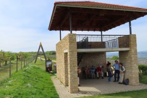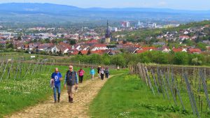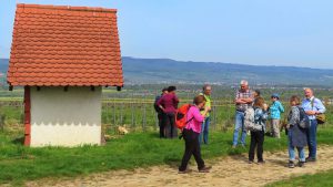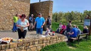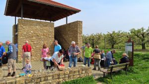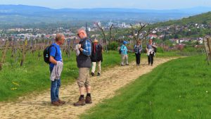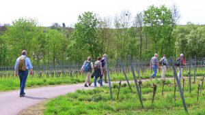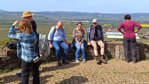 Fotos von der Wanderung am 13.04.2024, Gau Algesheim, 13km, 200hm, 19 Teilnehmer, „Weck, Worscht un Woi“ am Johannisberger Türmchen und Einkehr im „Schloss Ardeck“, geführt von Peter M.