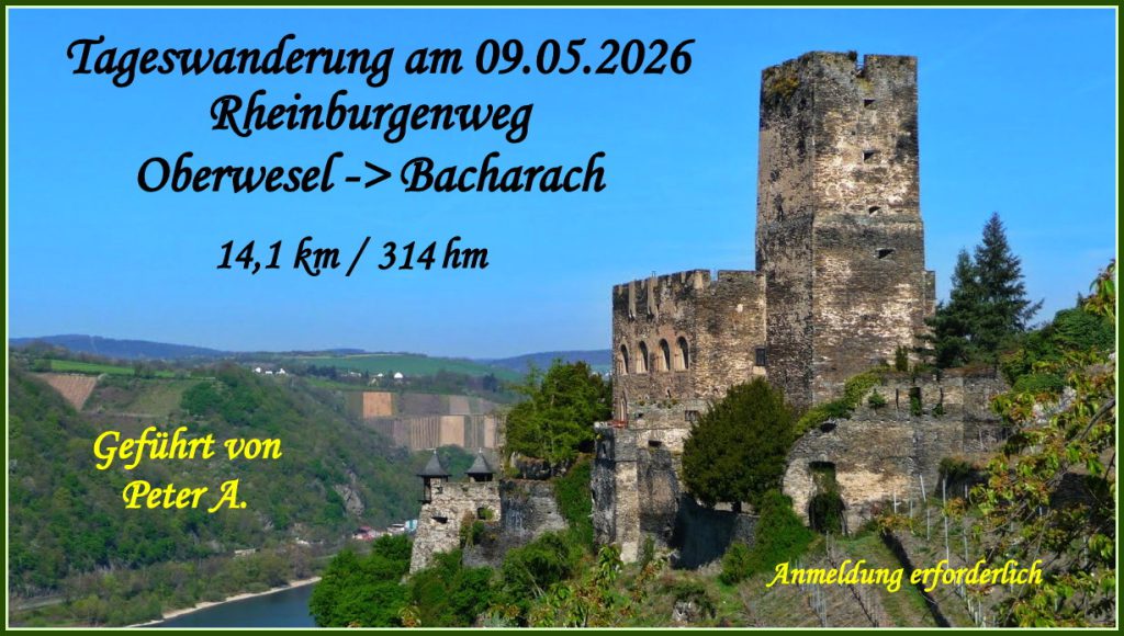 Wanderung am 9.5.2026 – Rheinburgenweg Oberwesel nach Bacharach